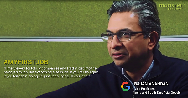 “If you fail, try again, if you fail again, try again, just keep trying until you land it,” says Rajan Anandan, Vice President, India and South East Asia, Google.